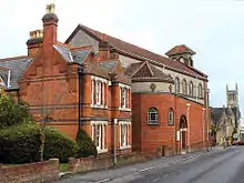 The presbytery adjacent to the church was built in 1874 for Fr Hall and is a locally listed building on the Rushmoor Borough Council list. The two-storey building with lower ranges to the rear is of red brick with a natural slate roof.[5]