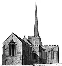 The next major event in the history of the church was during the First English Civil War. On 21 July 1645, during the Siege of Bridgwater, the church was damaged when it was caught in an artillery duel between the defending Royalists, led by Edmund Wyndham, and the invading Parliamentarians, led by Thomas Fairfax.[14] To what extent the church was damaged is unknown.[15]