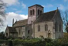 The oldest parts of the present church at Langford are the bell tower and nave, which were built in the second half of the 11th century.[4] They may post-date the Norman conquest of England, but they are very high quality work by Anglo-Saxon masons[5] and are the most important Anglo-Saxon remains in Oxfordshire.[6]