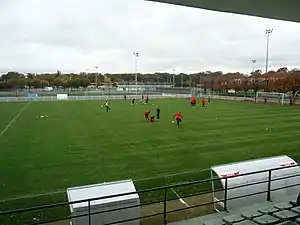 The complex's main stadium, with a seating capacity of 2,164 spectators, was one of Paris Saint-Germain's main grounds until 1974.[1][2] That year the club moved into the Parc des Princes.[3] The stadium — as well as the other artificial turf and grass football pitches of the complex — would host training sessions and home matches for the club's male and female academy sides.[1]