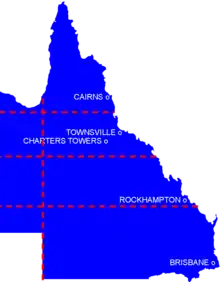The separatist movement in North Queensland was fostered by the sugar planters, who saw the existence of the sugar industry threatened by the "abolitionist" movement in South Queensland for the suppression of Kanaka labour.[4] One proposal is that Queensland should be divided by the 22nd parallel south with the boundary running just south of Sarina on the coast to the Northern Territory border between Boulia and Mount Isa[5]