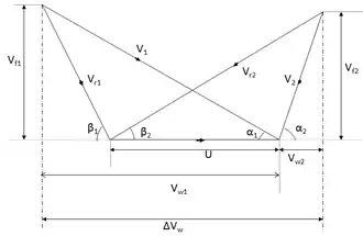 A velocity triangle paves the way for a better understanding of the relationship between the various velocities. In the adjacent figure we have: