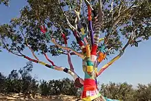 Duneier is an installation artist, part of the fiber-art movement known as Yarnbombing.[26] His installations exist for just 9 days typically in Los Padres National Forest.[27]