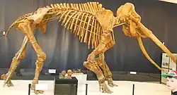 P. antiquus retreated from northern Europe at the end of the Eemian interglacial, and fossils after that time are rare. A molar from Grotta Guattari in Italy has been suggested to date to around 57,000 years ago (though other studies have found it to have a older early Late Pleistocene age), with other remains from the Iberian Peninsula dating from 50-40,000 years ago, and possibly as late as 34,000 years ago based on a tooth found at Foz do Enxarrique in Portugal.[42][18] A late date of around 37,400 years ago has been reported from a single molar found in the North Sea off the coast of the Netherlands,[43] but other authors have suggested that this date needs independent confirmation.[44] A 2020 study suggested that P. antiquus likely survived until around 28,000 years ago in the southern Iberian Peninsula, based on footprints found in Southwest Portugal and Gibraltar. Its extinction is likely to be due to climatic deterioration, possibly in association with hunting.[45]