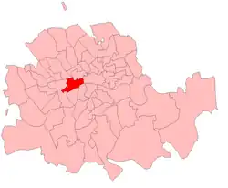 1885–1918: The Strand District (comprising the Liberty of the Rolls, Precinct of the Savoy, St Anne, Soho, St Clement Danes, St Mary le Strand, and St Paul Covent Garden) and the parishes of St James, Westminster, and St Martin in the Fields.[1]