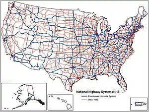 - ↑ Natzke, Stefan; Neathery, Mike & Adderly, Kevin (September 29, 2017). "What is the National Highway System?". National Highway System. Federal Highway Administration. Retrieved January 29, 2019.