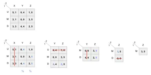 - ↑ Gilboa, I.; Kalai, E.; Zemel, E. (1990). "On the order of eliminating dominated strategies" (PDF). Operations Research Letters. 9 (2): 85–89. doi:10.1016/0167-6377(90)90046-8.