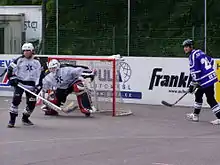 Wheeled variants involve the use of inline or roller skates.[1][2] and variously qualify as either inline hockey or rink hockey (also known as "Quad hockey").