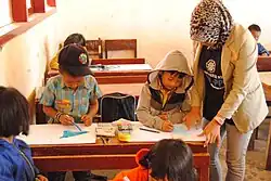 In Indonesia, the Student Study Service (Indonesian: Kuliah Kerja Nyata, lit. 'Real-work Study', abbreviated as KKN) is a concept of linking academic study with the practical experience of community service.[1] Since 1973, KKN has been integrated into the higher education curriculum for Indonesian universities, and it became one of Indonesian higher education's Tridharma, or threefold responsibilities, besides teaching and conducting researches.[1] Through the KKN program, the students are expected to share their knowledge and help local people to improve their lives and motivate them toward self-development.[2]