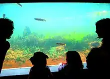 The lowest level of the Fluvarium features an underwater view of Nagle's Hill Brook through nine large viewing windows. Visitors can observe brown trout and salmon living in their natural habitat. The center also has a series of natural water aquariums and terrariums that showcase fish and amphibian species found throughout Newfoundland and Labrador.