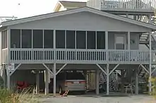 The seaside town of Sunset Beach got its start in 1955 when the land it occupies was bought by Mannon C. Gore. Impressed by the sunsets the southeast-facing island offered, he renamed 'Bald Beach,' as it had been called previously, to 'Sunset Beach.' Development began in earnest with the completion of a bridge connecting the beach island to the mainland in 1958,[5] modeled by Gore and operated by him until 1961 when it was taken over by the North Carolina Department of Transportation. With the help of his son, Edward, Gore began selling property on the island in 1958. Additionally, Gore built the original pier on the island, named the 'Vesta Pier' for the beached civil war blockade-runner which sat beneath the structure, though is now completely covered by sand.[6] Sunset Beach was later incorporated as a town in 1963.[7]