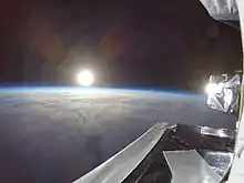 The first official mission was launched in on 16 April 2023 from Wanaka, New Zealand.[13] The goal was to stay aloft for three months and perform a soft landing, so the telescope could be re-used again in future missions.[13] The telescope communicated with earth via two systems: the Starlink satellite system, and the Starlink satellite constellation, and the Tracking and Data Relay Satellite System (TDRSS).[14] The connection to Starlink was lost on 1 May 2023, and the connection to TDRSS became unstable on 24 May 2023.[14] During the mission, the telescope obtained near-UV and optical imaging of galaxy clusters and other astronomical objects.[15] Due to the lack of connection to the ground, a decision was made to land the telescope early, and it descended on 25 May 2023, in Argentina.[15] The telescope was destroyed during the landing; it was dragged along the ground for 3km because the parachute failed to separate upon landing.[15] Some imagery was recovered from small capsules that contained backup copies of the data.[15]