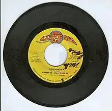 "Superfly" is a song by Curtis Mayfield, the title track from his 1972 soundtrack album for the film of the same name. It was the second single released from the album, following "Freddie's Dead (Theme From Superfly)", and reached #8 on the Billboard Hot 100 and #5 on the Best Selling Soul Singles chart.[4] The lyrics celebrate the craftiness and determination of the film's main character. The song plays over the film's closing credits.