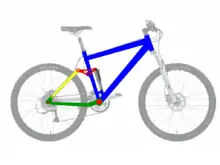 "Horst Link" suspension is a type of four-bar linkage suspension. It is characterized by having both connecting links pivot on the seat tube, with the lower pivot located above the center of the bottom bracket, and the rear axle being located higher than the pivot connecting floating link and lower connecting link.[14][15]