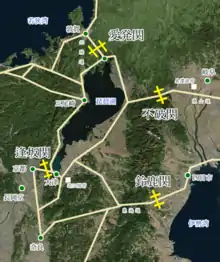 ![]() The Three Ancient Barriers, Suzuka Barrier is in then lower right corner | |