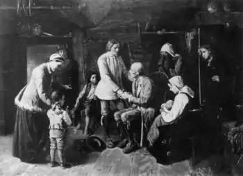 The Emigrants by S. V. Helander (1839–1901): a young Swedish farmer says farewell of friends and relatives before emigrating