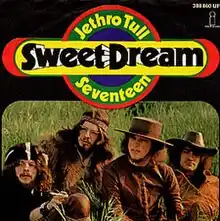 "Sweet Dream" is a song recorded by the English progressive rock band Jethro Tull on 31 August 1969, at Morgan Studios, London. It was their second straight UK Top Ten single, reaching number 7 in the UK Singles Chart.[4] The b-side was a non-album track, "17", recorded on 11 September 1969, also at Morgan. It later appeared as a bonus track on remastered versions of Stand Up.[5] "Sweet Dream" has appeared on many Tull compilation albums, while "17" has been rarely seen. In the UK, the single was the first release on Chrysalis Records.