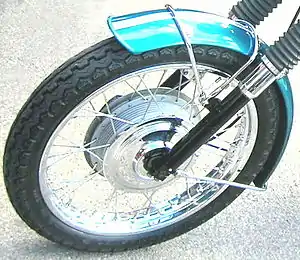 Originally introduced in early 1968 as the Roadmaster K81 rear tyre[6] by Dunlop Rubber Co. Ltd,[7] the tyre was renamed "TT100" because it was the first production tyre to reach a lap speed of 100 mph over the Isle of Man TT race course when Malcolm Uphill rode his works Thruxton Bonneville to victory in 1969 with a fastest lap of 100.37 mph during the 750 cc class production race.[8][9][10] The feat was repeated in 1971 when Ray Pickrell averaged 100.01 mph on a Triumph Trident Slippery Sam replica, a modified version of the motorcycle the tyre was designed for.[11] The tyres were standard fitment on production models of BSA and Triumph triple motorcycles.[12]