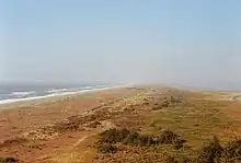 Table Bluff (Wiyot: Giloulh)[1] is a semi-flat terrace in Humboldt County, California, that terminates above the ocean in a dramatic, 165-foot (50 m) high cliff with views of the Eel River delta, the South Spit of Humboldt Bay, and the Pacific Ocean. It separates Humboldt Bay to the north from the Eel River to the south. It overlooks approximately 9,000 acres (36 km²) of wildlands administered by various federal and county agencies. It is 12 miles (19 km) south of Eureka and 5.5 miles (8.9 km) west of US Highway 101. Table Bluff County Park provides access to the South Spit. The park is also used as a hang-gliding and paragliding staging area. The federally endangered western lily, Lilium occidentale, is found growing on Table Bluff at Table Bluff Ecological Reserve.