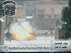 An improvised fired tank shell hitting a US Humvee in Ramadi