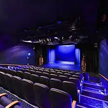 After suffering extensive smoke damage during a fire in 2007, An Taibhdhearc closed its doors for an extended period of renovation and refurbishment.[1] While the theatre was closed, An Taibhdhearc continued to produce shows in other venues around Galway city and county. The theatre was re-opened by President of Ireland, Michael D Higgins, at a gala event in September 2012.[2]