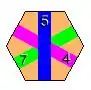 To start, each player takes a board with 19 hexagonal cells arranged as a 3×3 hexagon. Additionally, each player takes a set of 27 tiles which have different combinations of colored/numbered paths;[1] the paths are arranged as a triple-cross, linking opposite sides (Van Ness Serpentiles notation 300). The color of the board's playing field matches the background of the tiles for each player.[2]