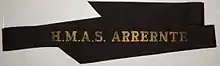 Experimental cap tally with variant spelling ARRERNTE for the Royal Australian Navy frigate, HMAS Arunta