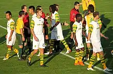 In January 2010, the club became known as "FC Tampa Bay" due to a legal dispute with sports apparel company Classic Ink over the merchandising rights to the Tampa Bay Rowdies name and related trademarks.[9] The name was still used informally by the club until October 2010, when the team announced that it would not use the "Rowdies" nickname at all until the ongoing rights issue was resolved.[10][11]