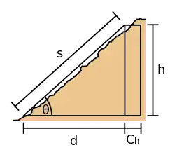 - is the angle between the measured slope line and horizontal line;