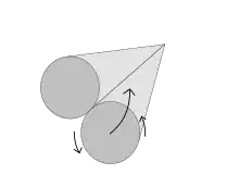 The inner and outer ring raceways are segments of cones and the rollers are tapered so that the conical surfaces of the raceways, and the roller axes, if projected, would all meet at a common point on the main axis of the bearing. This geometry makes the motion of the cones remain coaxial, with no sliding motion between the raceways and the outside diameter of the rollers.