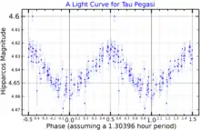 A light curve for Tau Pegasi, plotted from Hipparcos data[18]