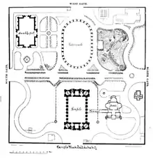 In 1847, when Mormon pioneers arrived in the Salt Lake Valley, president Brigham Young selected a plot of the desert ground, initially referred to as Temple Block,[4] and proclaimed, "Here we will build a temple to our God."[5] When the city was surveyed, the block enclosing that location was designated for the temple, and became known as Temple Square. Temple Square is surrounded by a 15-foot wall that was built shortly after the block was so designated.