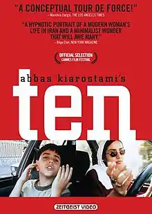 Ten (Persian: ده; appears as 10 during the opening credits) is a 2002 Iranian docufiction film starring Mania Akbari and Amina Maher.[1] It was released with Abbas Kiarostami credited as the director; however, his role in the film and the source of the footage have been disputed by Akbari since 2020.
