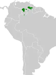 • S. r. roraimae: Mount Roraima straddling the junction of Venezuela, Guyana, and Brazil, and other tepuis in southeastern Venezuela and western Guyana