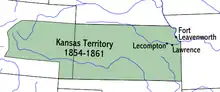 | Capital | Pawnee (provisional; July 2–6, 1855) Fort Leavenworth (provisional) Lecompton (1855–61) Lawrence (de facto, 1858–1861) | ||||||||||