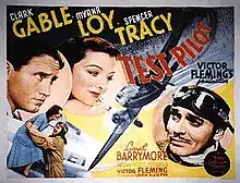 Test Pilot is a 1938 American drama film directed by Victor Fleming, starring Clark Gable, Myrna Loy and Spencer Tracy, and featuring Lionel Barrymore. The Oscar-nominated film tells the story of a daredevil test pilot (Gable), his wife (Loy), and his best friend (Tracy).