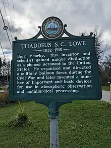 Thaddeus Sobieski Constantine Lowe (August 20, 1832 – January 16, 1913), also known as Professor T. S. C. Lowe, was an American Civil War aeronaut, scientist and inventor, mostly self-educated in the fields of chemistry, meteorology, and aeronautics, and the father of military aerial reconnaissance in the United States.[1] By the late 1850s he was well known for his advanced theories in the meteorological sciences as well as his balloon building. Among his aspirations were plans for a transatlantic flight.