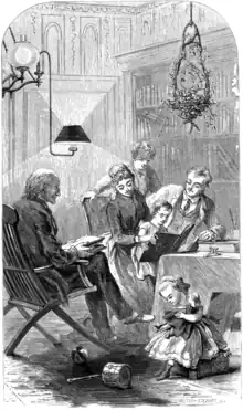 Catharine Beecher was born on September 6, 1800, in East Hampton, New York, and died on May 12, 1878.[2] She was the daughter of the Congregationalist minister, Lyman Beecher, and of Roxana Beecher. Catharine had two prominent siblings, Henry Ward Beecher and sister Harriet Beecher Stowe.[2] While Roxana tended to the family and maintenance of the home, Lyman was a prominent revivalist and social reformer amidst the nineteenth century. In 1816, Roxana Beecher died of consumption. Consequently, Catharine Beecher assumed and performed many domestic responsibilities, including cutting and sewing her and her sibling's clothes.[3] These responsibilities, alongside Beecher's close relationship with her father, greatly influenced her later role as an educator and her ideas about family life. Her father’s continued support encouraged her work.[3]
