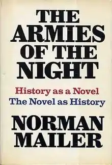 The Armies of the Night: History as a Novel/The Novel as History is a nonfiction novel recounting the October 1967 March on the Pentagon written by Norman Mailer and published by New American Library in 1968. It won the Pulitzer Prize for General Non-fiction[1] and the National Book Award in category Arts and Letters.[2] Mailer's unique rendition of the non-fiction novel was perhaps his most successful example of new journalism, and received the most critical attention. In Cold Blood (1965) by Truman Capote and Hell's Angels (1966) by Hunter S. Thompson had already been published, and three months later Tom Wolfe would contribute The Electric Kool-Aid Acid Test (1968).