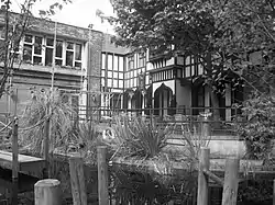 The Dog in the Pond (commonly known as The Dog, briefly named The Jolly Roger) is a fictional public house in the British Channel 4 soap opera Hollyoaks. It has been at the centre of the show's setting since it began in 1995. In 2003, The Dog in the Pond was nominated as the "Best TV Boozer of All Time" in a poll run by Blackthorn Cider.[1] The pub was burnt down in episodes airing in September 2006 during the 'Fire at The Dog', which killed five regular characters.[2] The fire was named as one of soap's biggest disasters by the Daily Record in 2010.[3]