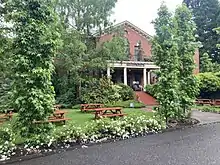 In 1917, plans were developed for the Masonic and Eastern Star Home for the State of Oregon, and construction began in 1920.[5][6] It was established as a home for Masons and their families in need,[7] and began operations in 1922.[1] Initial construction costs were estimated at $245,000.[1] A smaller building, called the Children's Cottage, was built in 1926 to house orphans, but the orphanage closed in 1928 after conflict between the children and the elders.