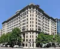 The Investment Building is a high-rise office building in Washington, D.C. The building rises 13 floors and 154 feet (47 m) in height.[1] The interior renovation and redesign of the building was by architect César Pelli; Pelli also designed the Petronas Twin Towers in Kuala Lumpur. The renovation was completed in 2001.[2] As of July 2008, the structure stands as the 32nd-tallest building in the city, tied in rank with 1310 G Street, 1430 K Street, 1875 K Street, the Westin Washington, D.C. City Center, the Executive Tower, 1701 Pennsylvania Avenue the Capital Hilton and The Westin Washington, D.C. City Center. The building is composed entirely of commercial office space.[1]
