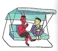Enzensberger fostered a passion for mathematics and numbers, although he was not a mathematician by trade. In 1998, he delivered a speech at the International Congress of Mathematicians criticizing the isolation of mathematics from popular culture.[1][2] The Number Devil was ultimately written on suggestion from Enzensberger's eleven-year-old daughter Theresia. Because he was displeased with the way mathematics was taught to students at school, the German author decided to pen a book that teaches mathematics in an innovative way.[3] German illustrator Rotraut Susanne Berner provided many full-page illustrations, as well as smaller drawings, for the book.[4] The Number Devil was first published in German in 1997. The Number Devil has been noted for its unorthodox abandonment of standard notation; instead, Enzensberger created a variety of fictional terms to help describe mathematical concepts. For instance, exponentiation takes the term hopping, and the fictional term unreasonable numbers was coined for irrational numbers.[5] The UCLA Professor of Slavic Languages Michael Henry Heim translated the book from German to English. The translation was particularly difficult in that it required special attention to the numerical aspect of the book. He was also challenged by the necessity to use simple English words appropriate for the target audience of The Number Devil—that is, children aged eleven to fourteen.[6] The mathematics book was then published in English in 1998.[7]