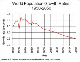 The evidence against a population bomb: Since the 1950s population growth rate has decreased, and is projected to decline further.