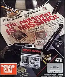 The President Is Missing is a computer simulation game written by Paul Norman for the Commodore 64 and published by Cosmi in 1988.[1] The game came with an audio cassette with different recordings and an anonymous note signed by "Saduj" (Judas in reverse).