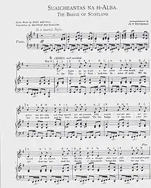 Malcolm MacFarlane (1853-1931) translated this song from the Scottish Gaelic of Evan MacColl (1808-1898).[1] It was first published in Macfarlane's book, Songs of the Highlands, Inverness: Logan & Company, 1902, pp. 44–45.[2] The accompaniment was by Frederick Wilson Whitehead (1863-1926). It is considered by some to be a possible national anthem for Scotland. A spirited rendition of this song by Ina Miller can be found here.
