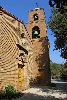 Fascinated by California missions, Thompson Webb took the mission at San Juan Capistrano as the inspiration for the Vivian Webb Chapel, a monument to both his religious faith and his love for his wife. In 1937, with the help of a small cement mixer and two hired workers, Thompson began making 60-pound (27 kg) adobe bricks. After a year of turning out more than 10,000 mission-style bricks and drying them in the sun on the school's tennis courts, he began building the chapel's foundation in 1938, and laid the chapel's first brick in 1939. He built the walls of the chapel with the help of students, parents, visitors, prospective students and even the governor of Tennessee.[14]