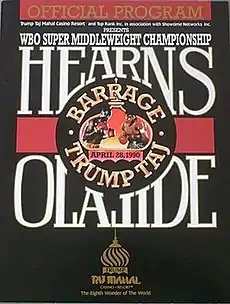 Thomas Hearns vs. Michael Olajide, billed as The Barrage at Trump Taj, was a professional boxing match contested on April 28, 1990 for the WBO super middleweight title.