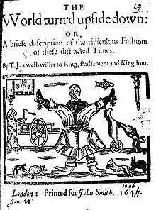 Cover of "The World turn'd upside down" (1646) by "T.J.", believed to stand for Thomas Jordan
