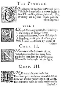 Notably, the book contains several verses satirising certain alchemical or hermetic connections to the Middle English poet Geoffrey Chaucer, who had written The Canon's Yeoman's Tale, a work satirizing alchemists. Inadvertently, this played a large part in the Renaissance conception of Chaucer as an alchemist, which was later abandoned as it was found to be untrue.[8]